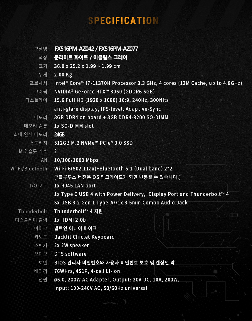 FX516PM-AZ077 i7-11370H|16G|RTX3060|240Hz+300nits