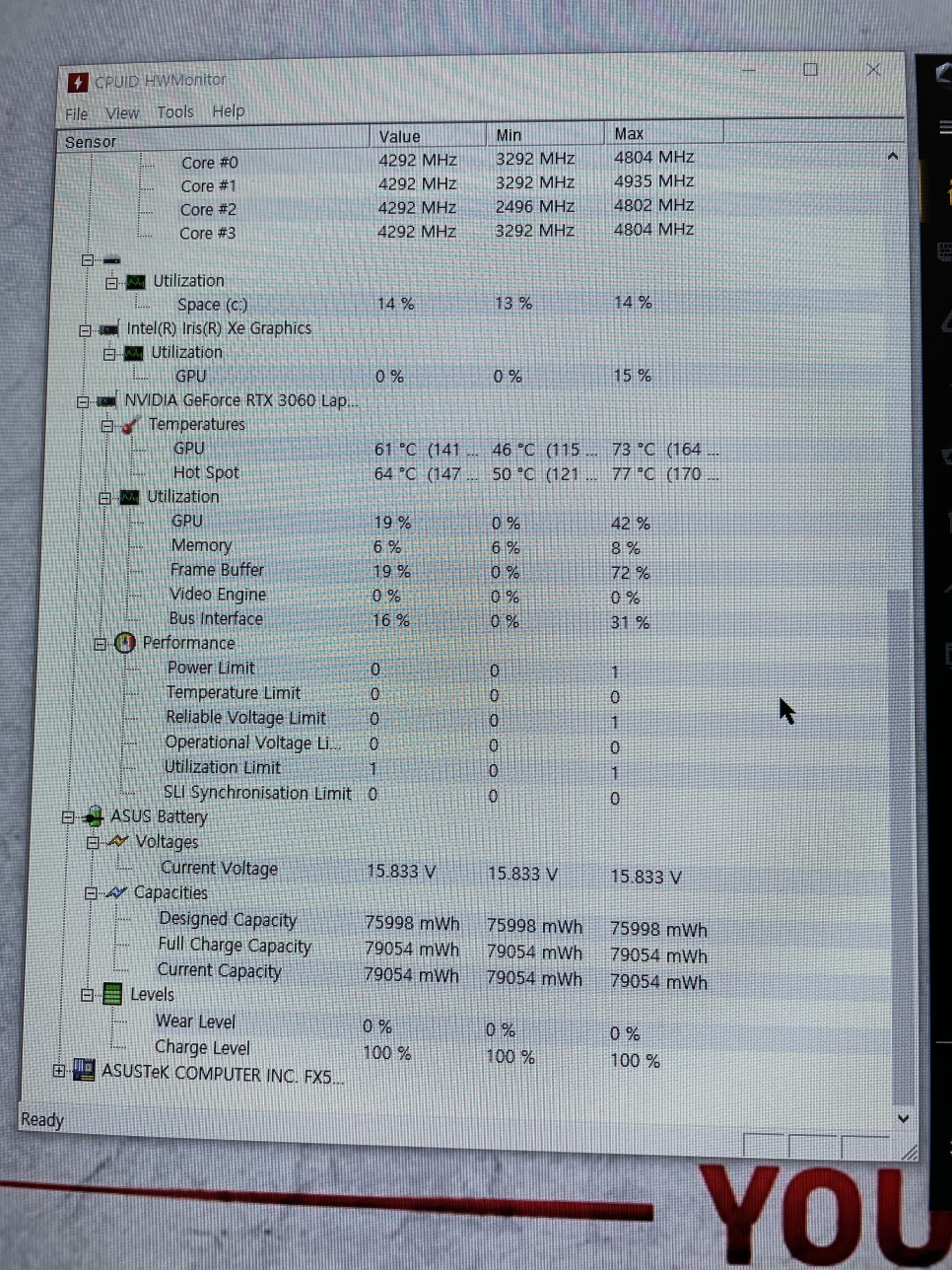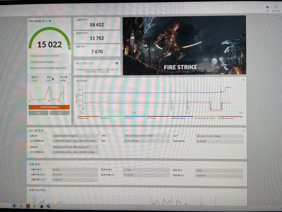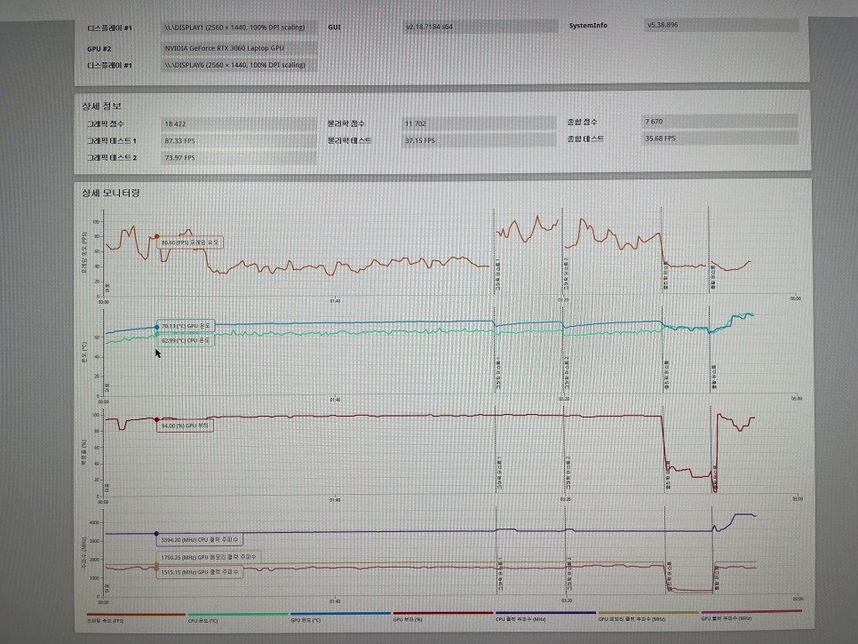 저는 노트북 쿨러 없이 돌렸기 때문에 이 부분은 쿨러를 사용하면 개선될 것으로 보입니다.
