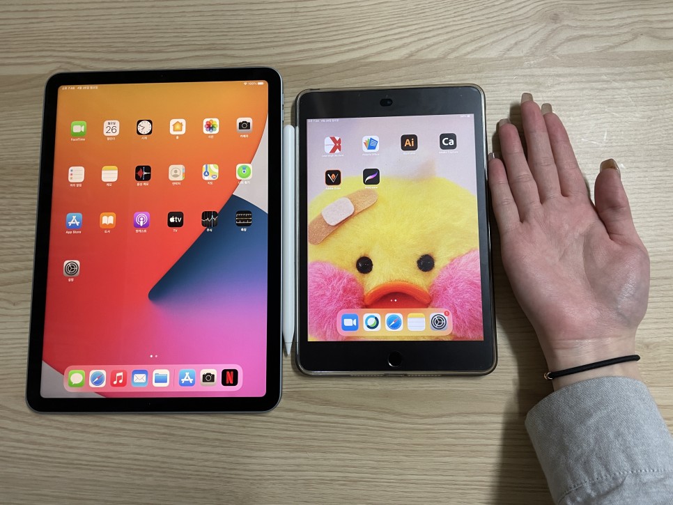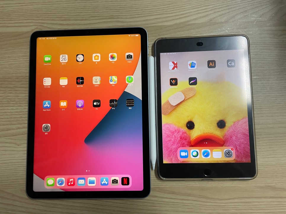 에어 4세대와 미니 5세대를 비교해봤는데요,