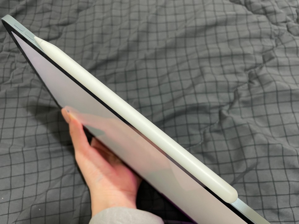 아이패드 옆에 펜슬이 자석처럼 딱 붙어서
