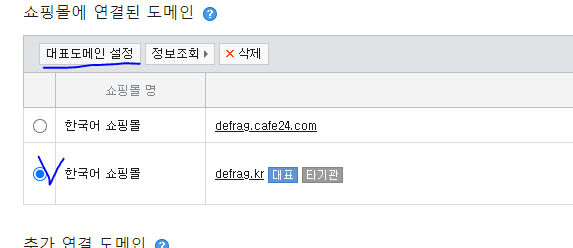 저는 이것저것 헤매느라 순서가 거꾸로 되어 이미 대표 도메인 설정은 되어있네요~