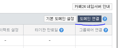 아까 카페24 창 열어뒀던 그곳에서 도메인 연결 클릭