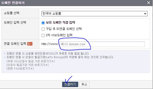 후이즈에서 구매했던 도메인 입력하고 연결해줍니다!!