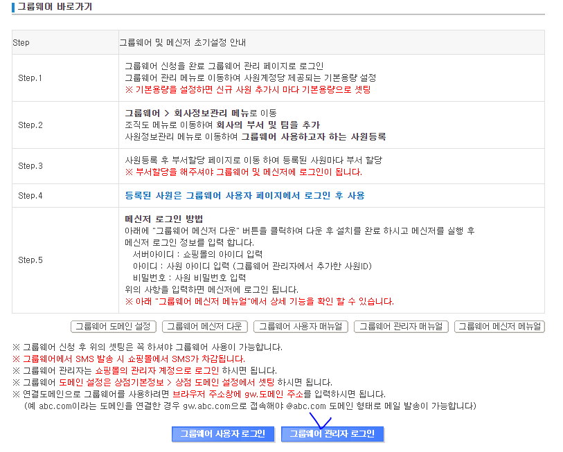 여기서 그룹웨어 도메인 설정을 누르시면 저번 포스팅에서