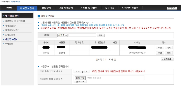 이때 직원들이 사용할 아이디를 미리 받아주셔야사원 등록하실 수 있겠죠!