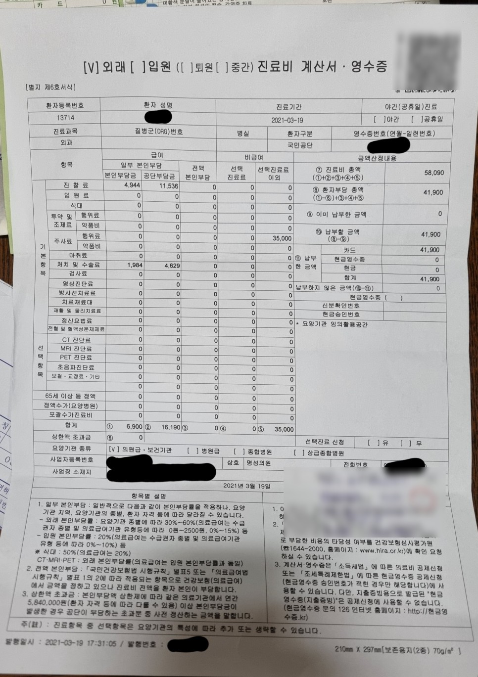주사도 맞고 보니 환자부담금액이 41900원이 나왔어요ㄷㄷ