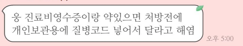 진료비영수증이랑 처방전-개인 보관용에 질병코드를 넣어달라고